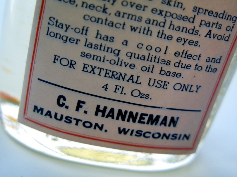 Carl F. Hanneman printed his own labels and wrote the ad copy for Stay Off.