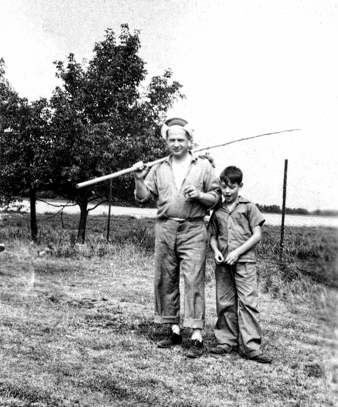 Carl F. Hanneman and son David D. Hanneman, heading out to fish. Read more about this photo: http://wp.me/p4FxQb-46