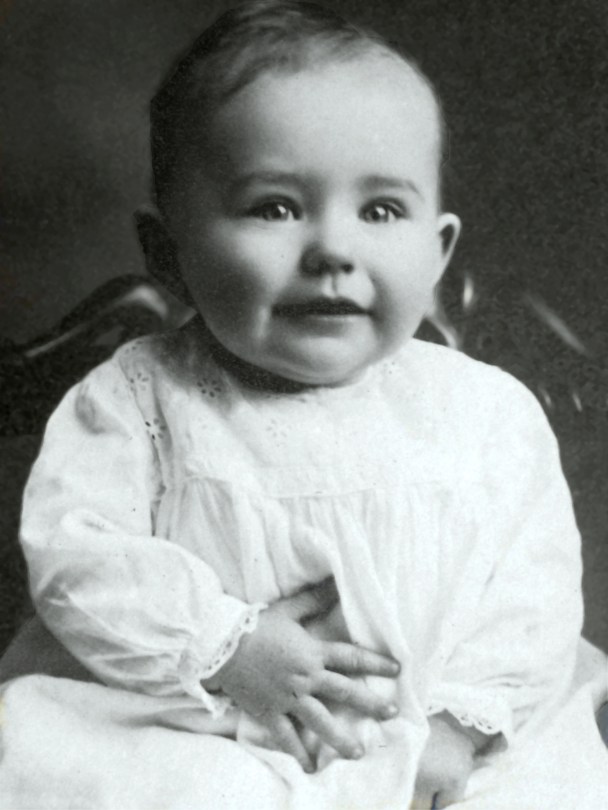 Nina Treutel of Vesper, Wis., is about 18 months old in this circa 1916 photograph. Nina’s parents are Walter Treutel and Mary Helen (Ladick) Treutel.