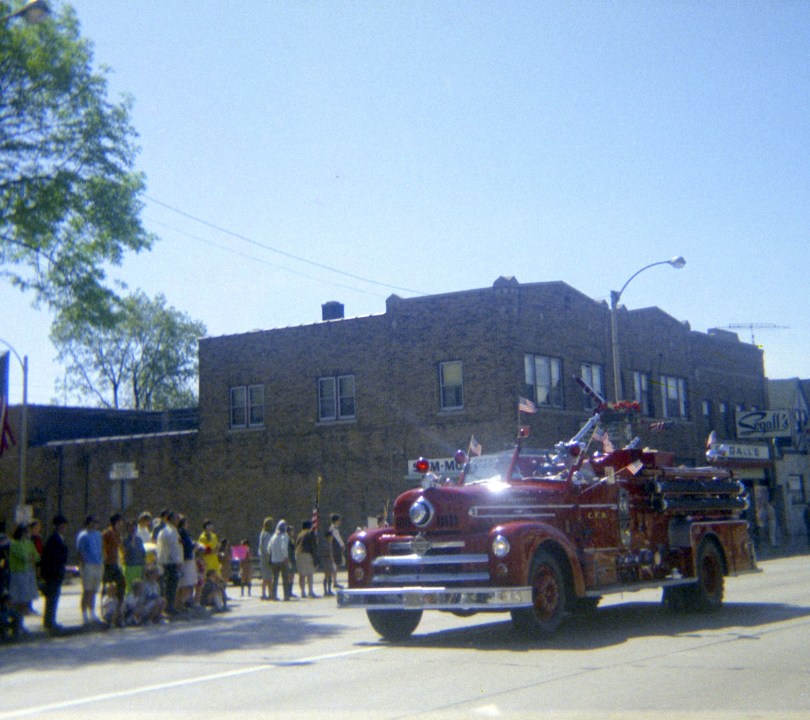A fire truck heads down the parade route in Mauston in the late 1960s.