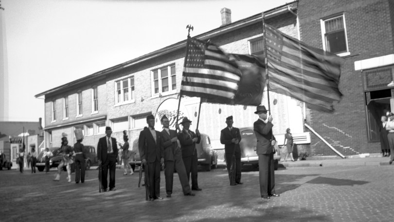 Members of the American Legion prepare to march in a parade in Mauston, circa 1942.