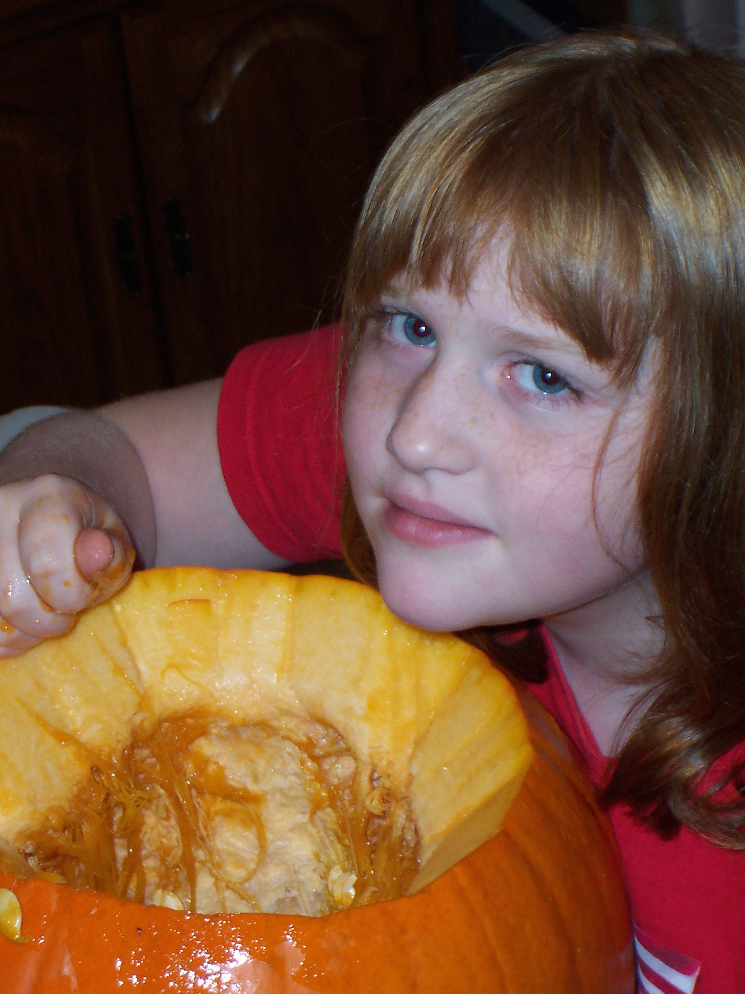 Samantha Hanneman carves her pumpkin, circa 2002.