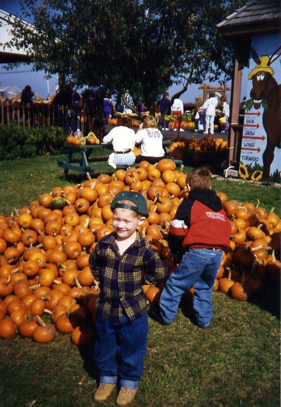Stevie Hanneman poses before the pumpkin pile at Swan’s Pumpkin Farm, circa 1995.