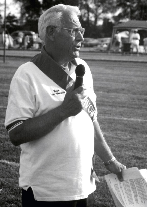 Hanneman acting as emcee at the American Cancer Society Relay for Life. (Sun Prairie Star Photo)
