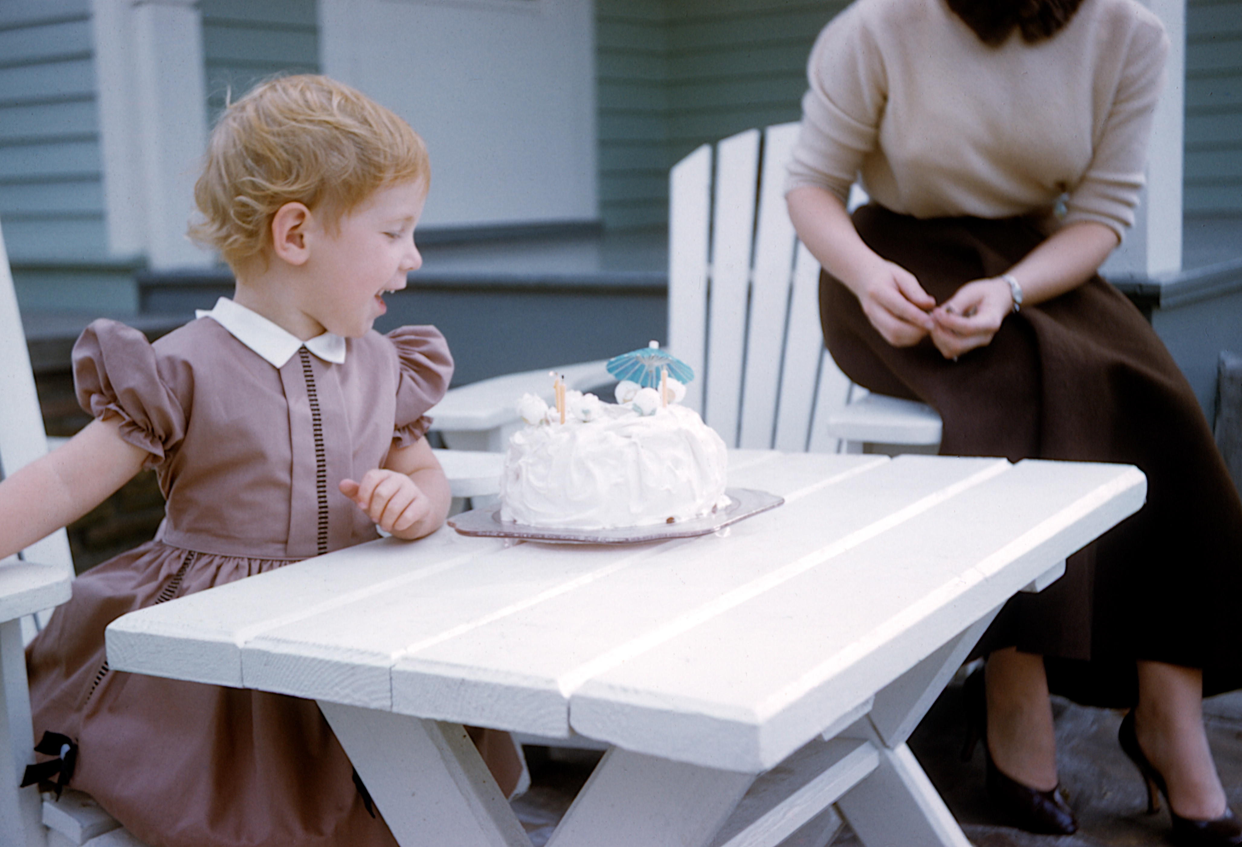 Jane Hanneman reacts with delight to her birthday cake at her Grandma and Grandpa Hanneman’s house in Mauston, Wis.