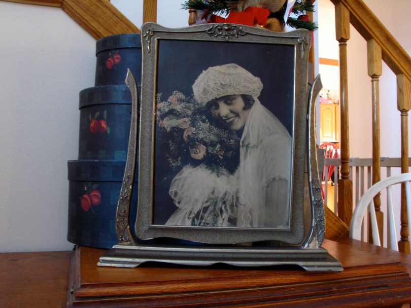 The bridal portrait of Ruby V. Hanneman in its original frame.