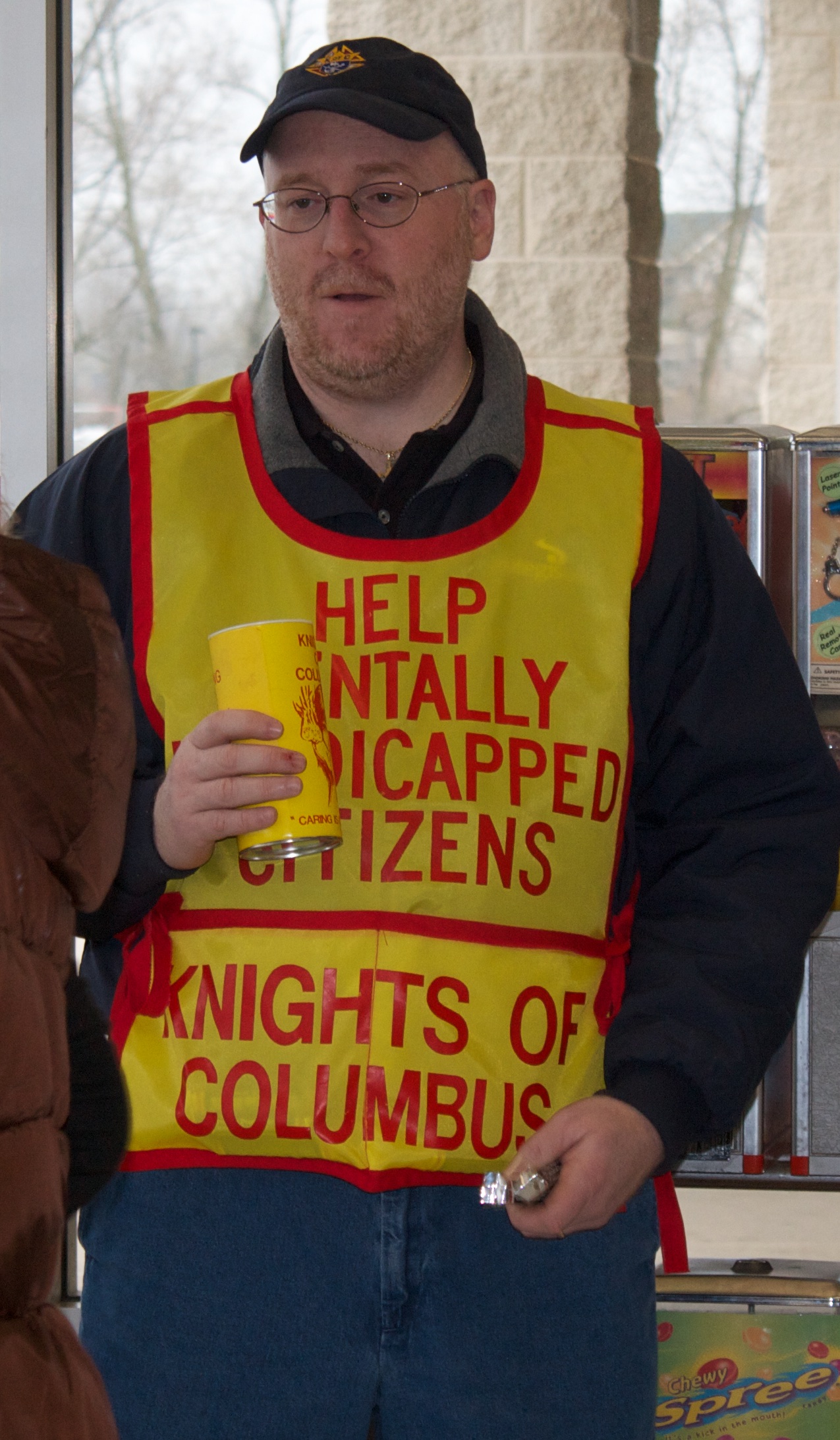 Joe Hanneman hands out Tootsie Rolls and raises money for the mentally handicapped in Racine, Wis.