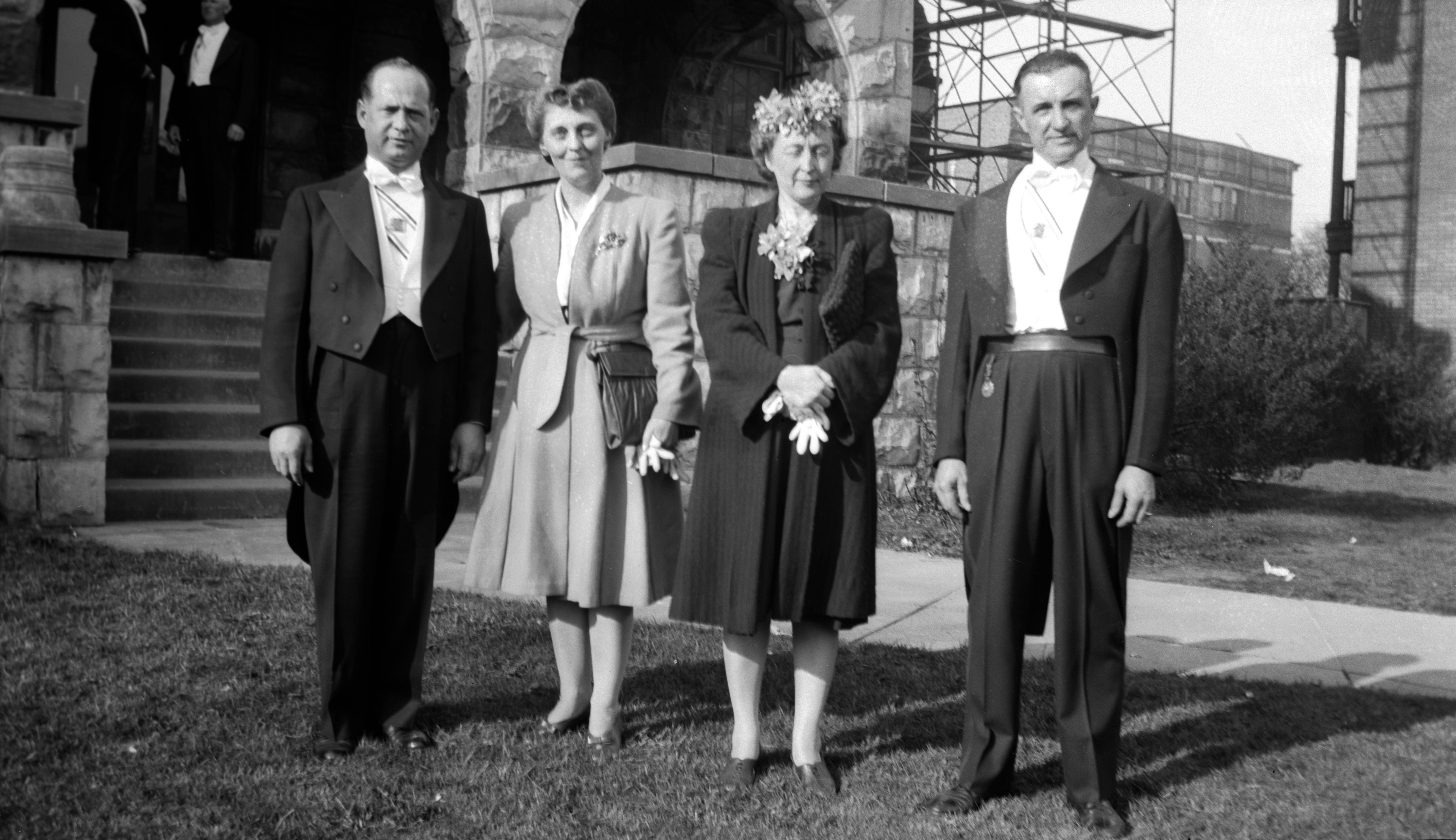 Carl F. and Ruby V. Hanneman (at left) on the day Carl was made a Sir Knight in the Fourth Degree of the Knights of Columbus.