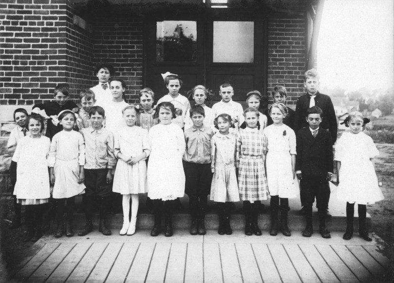 The second photo was taken outdoors at an entrance to the school. Carl is third from the left in the first row. At the time, the Hannemans lived on Baker Street in Grand Rapids, so the Howe School would have been the closest public school. But the building in the photo does not match exterior details of the Howe School, so it’s unclear where Carl spent his elementary school years.