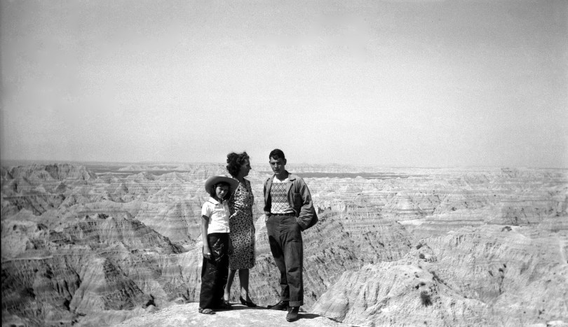 Ruby V. Hanneman with children Lavonne and David at the Black Hills of South Dakota, circa 1947.