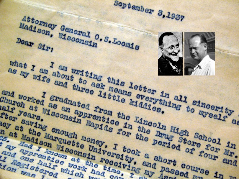 Carl Hanneman wrote to Orland Loomis in 1937 to seek his help fixing a state law that discriminated against assistant pharmacists who worked in small towns.