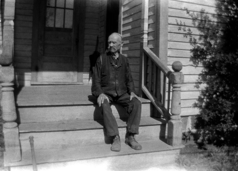 Carl Frederick Christian Hanneman (1866-1932) sits on the porch of his home at Wisconsin Rapids, Wis., in 1931 or 1932. Hanneman, who went by the name Charles, emigrated from Meesow, Pomerania to Portage County, Wis., in 1882. He left the family farm around 1905 and began employment in the paper mills of the Consolidated Water, Power & Paper Co. in Wisconsin Rapids. The son of farmers, he married Rosine Bertha Henrietta Ostermann in April 1891. He worked at the Consolidated Water, Paper & Power Co. as a laborer. He died in October 1932 from prostate cancer, and was survived by four sons: Arthur John, Frank Herman, Wilbert George and Carl Henry Frank Hanneman.