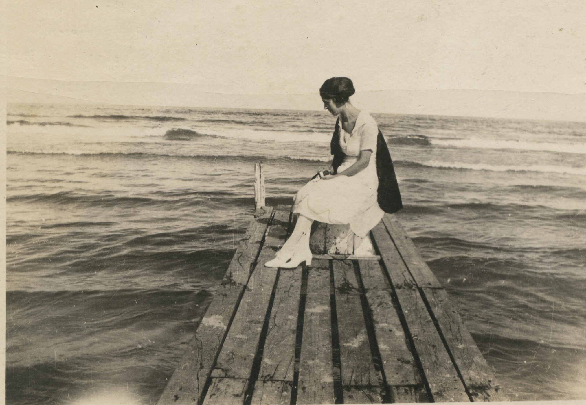Ruby Treutel on a pier at Lake Michigan.