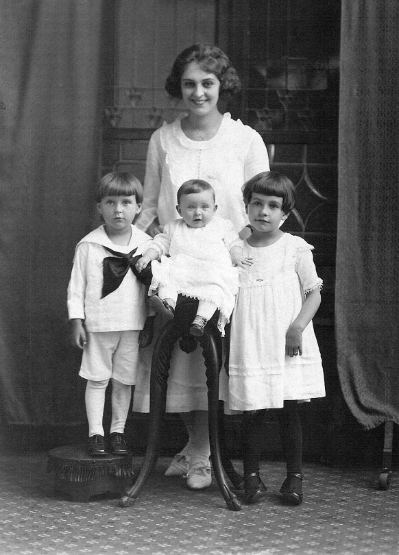 Ruby Treutel (in back) with brother Marvin and sisters Elaine and Nina.