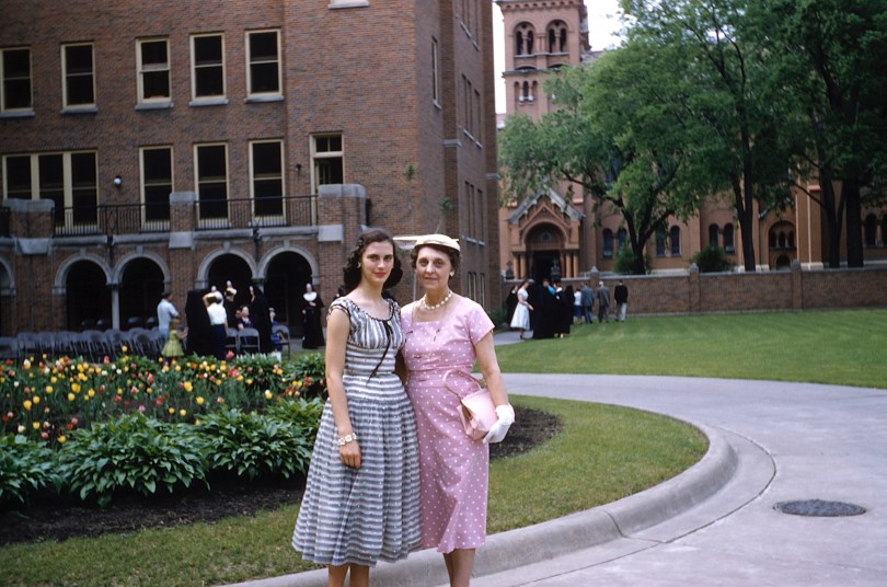 Ruby Hanneman and daughter Lavonne at Viterbo College in the late 1950s.