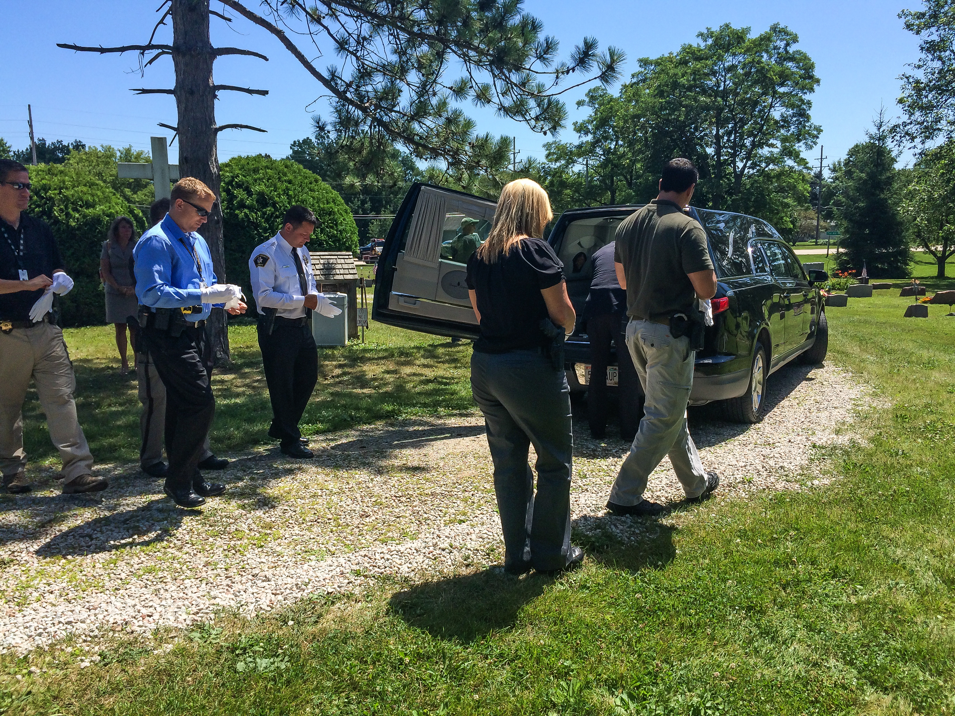 Police officers and sheriff’s deputies served as pall bearers.