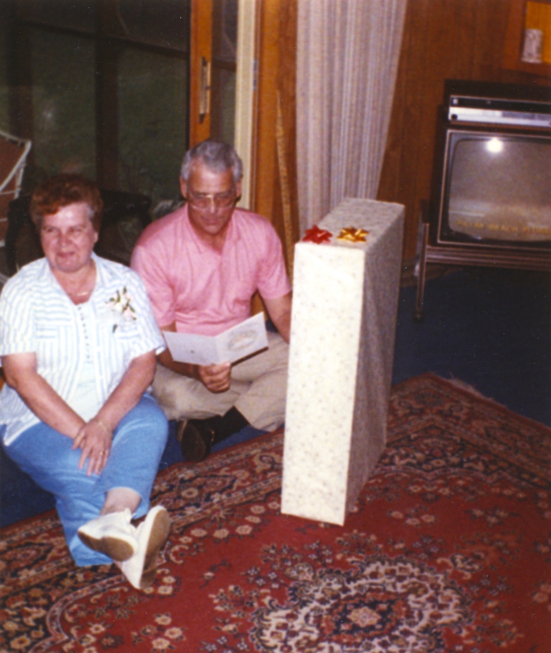 Mary and Dave receive a grandfather clock on their 25th anniversary.