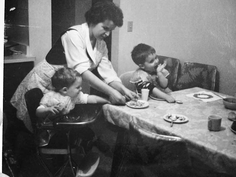 Mary Hanneman serves up goodies for David (right) and Joe Hanneman.