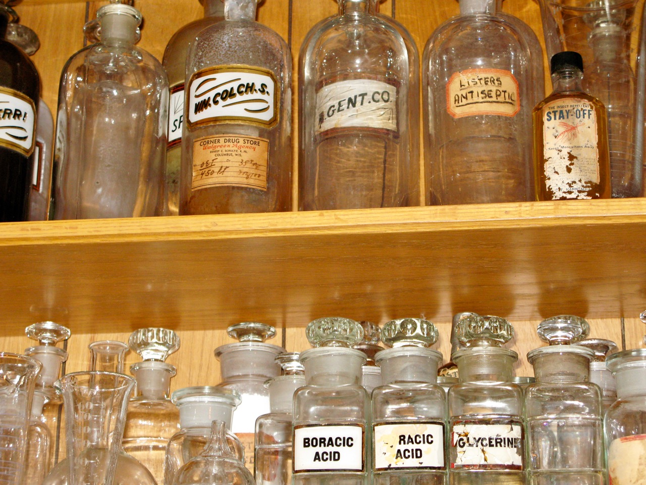 Carl F. Hanneman’s pharmacy glass collection sat on the shelves above the television for decades.
