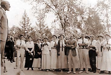 INSPIRING WORDS: UW President Charles Van Hise speaks at the original plaque dedication in June 1915.