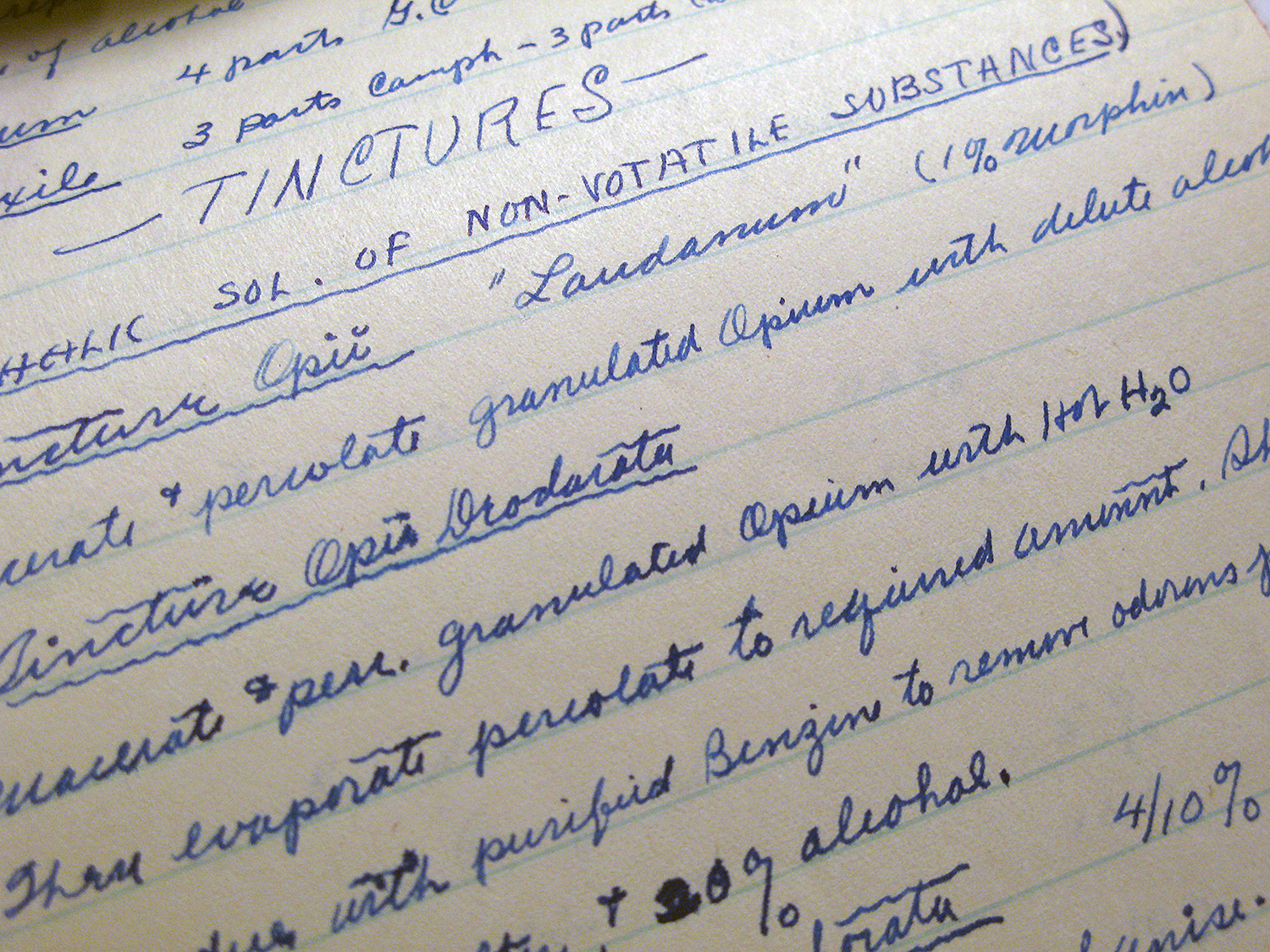 A sample from one of Carl Hanneman’s pharmacy notebooks.