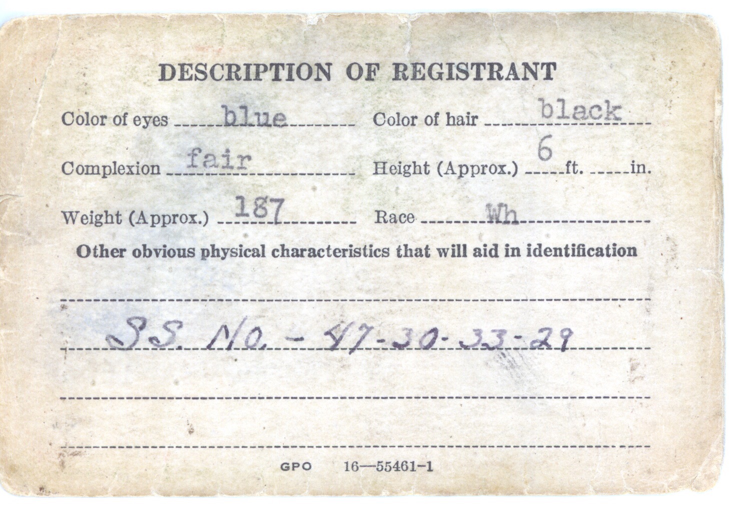 Flip side of the Selective Service System draft card of David D. Hanneman of Mauston, Wisconsin.