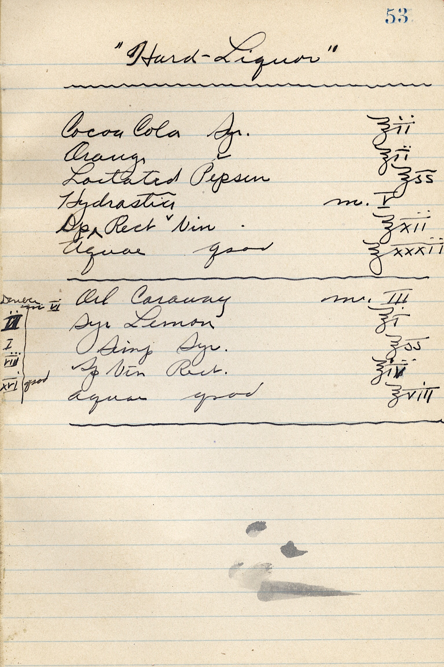 The 1920s pharmacy recipe for hard liquor, which during Prohibition required a prescription. This document was written by Carl F. Hanneman while he studied at Marquette University.