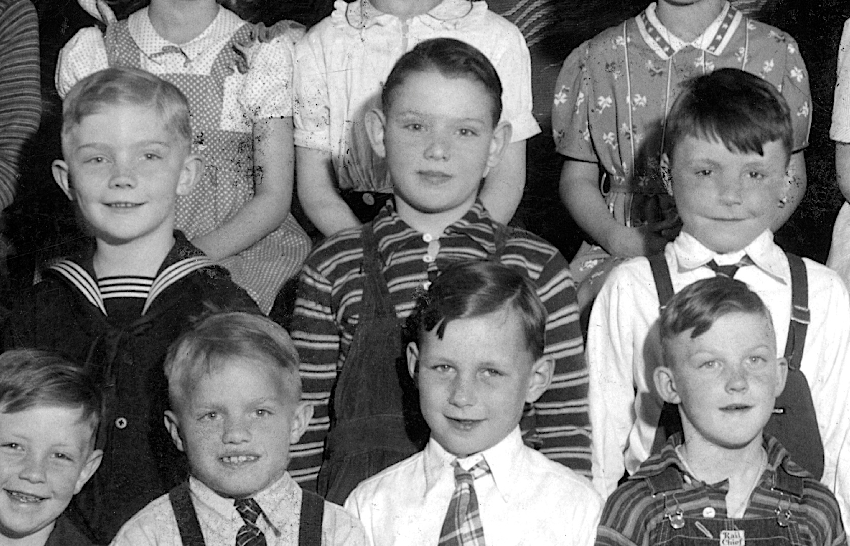 This is one of the earliest photos showing brothers David D. Hanneman (left) and Donn G. Hanneman, taken circa 1936. I believe this portrait was taken in Mauston, Wisconsin, where the family moved in early 1936. My Dad (David) was 3 years old that year. The family had a good relationship with Bauer Studios, so throughout the years there were always nice portraits of the Hanneman children.