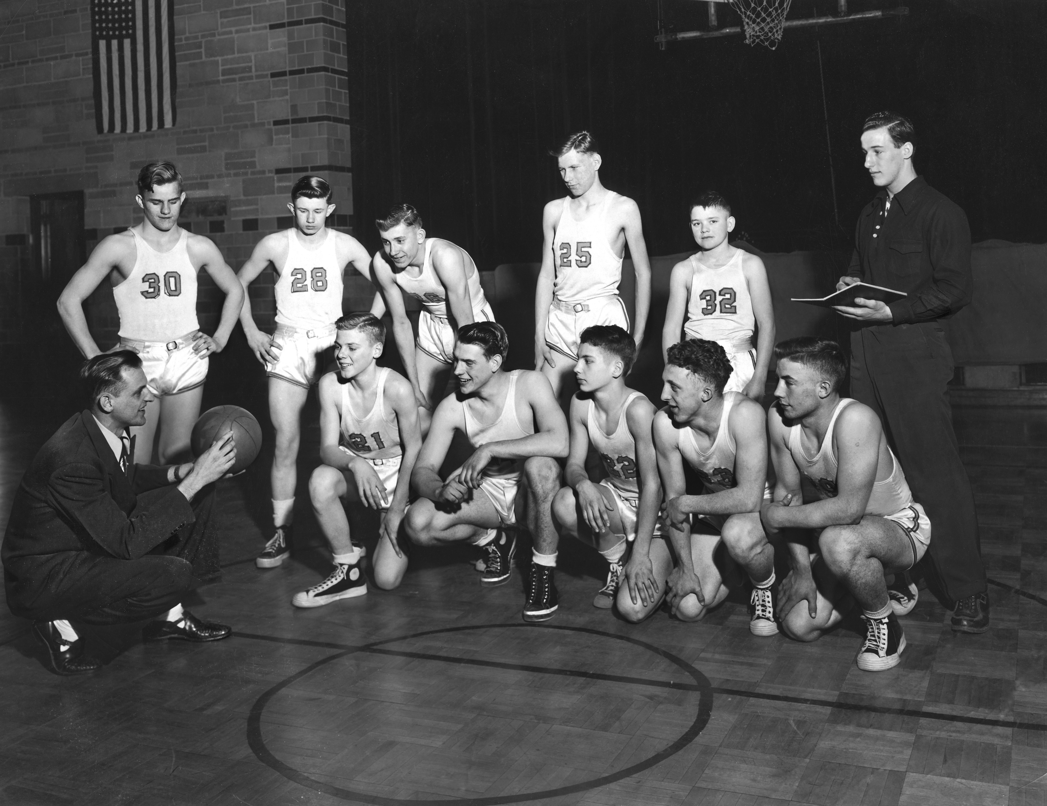 For his sophomore year, Dad was on the B Squad for basketball. His final two years he played center on the varsity squad.