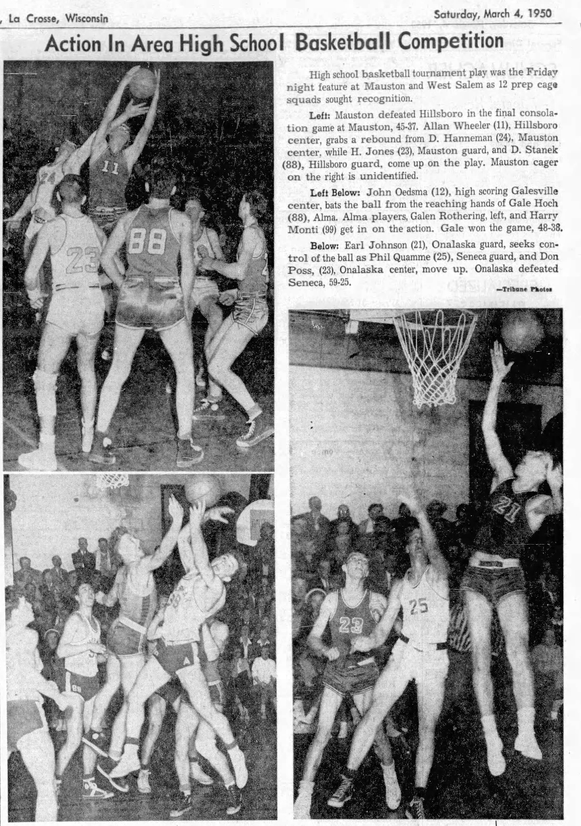 There were no surprises in the yearbook on the athletics front, where Dad always excelled. The 1948 MHS Bluegold finished in a tie for second in the West Central Conference with a 5-1-1 record in football. The team was on pace to win its second consecutive title, but a late-season 7-0 loss to eventual champion Sparta knocked them into second. The Bluegold finished the season with a 12-12 tie with Viroqua after the visitors stormed back in the final 54 seconds to secure the draw to ruin Mauston’s homecoming.