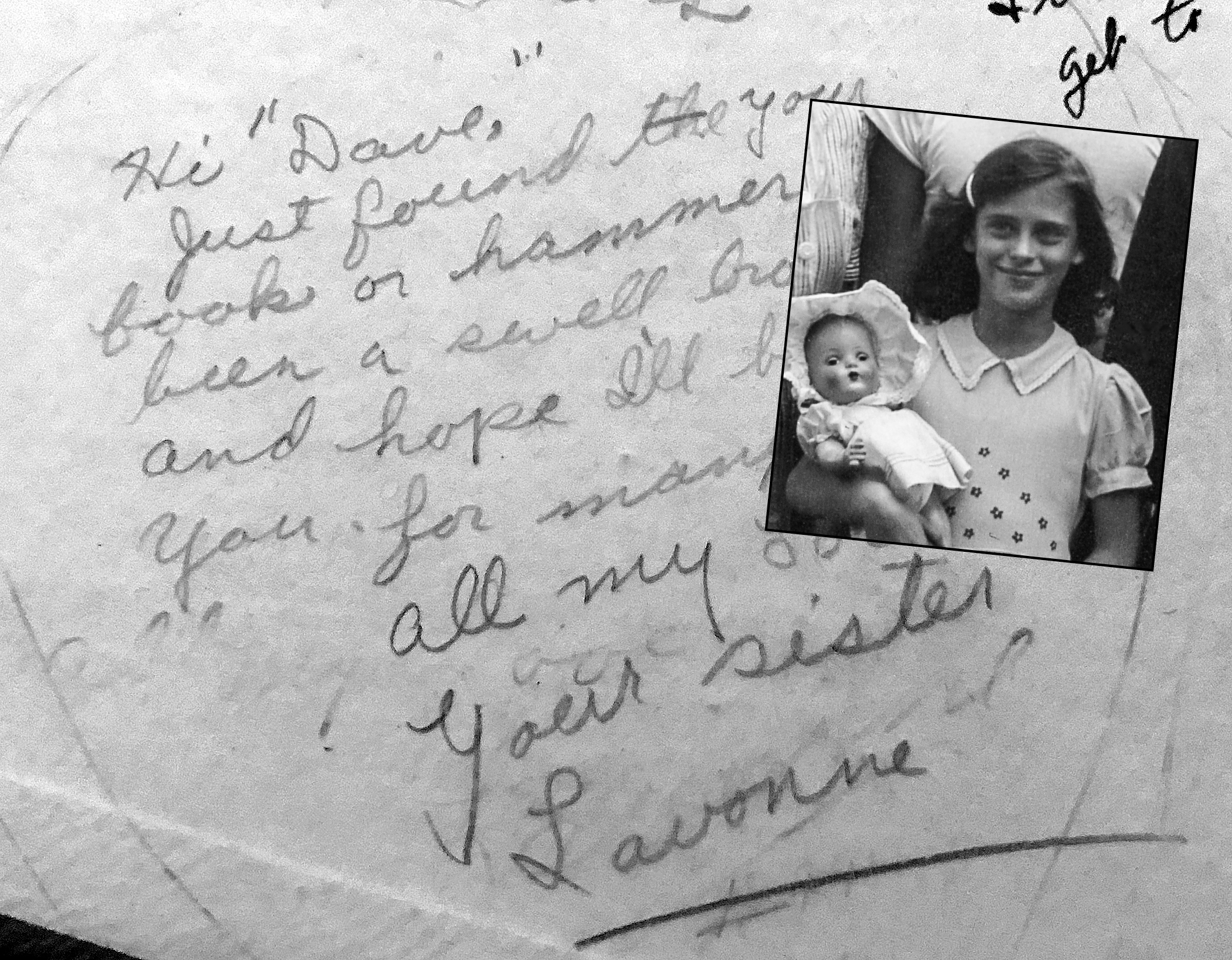 One of the most touching things in all of Dad’s yearbooks was the autograph left each year by his younger sister, Lavonne. Dad was four years older and took seriously his job of protecting Vonnie. They had a special bond. Here she wrote a tribute note, erased it and penciled in another one, circled by a heart. After her 1986 death at age 48, Dad told me these notes held very special meaning for him.