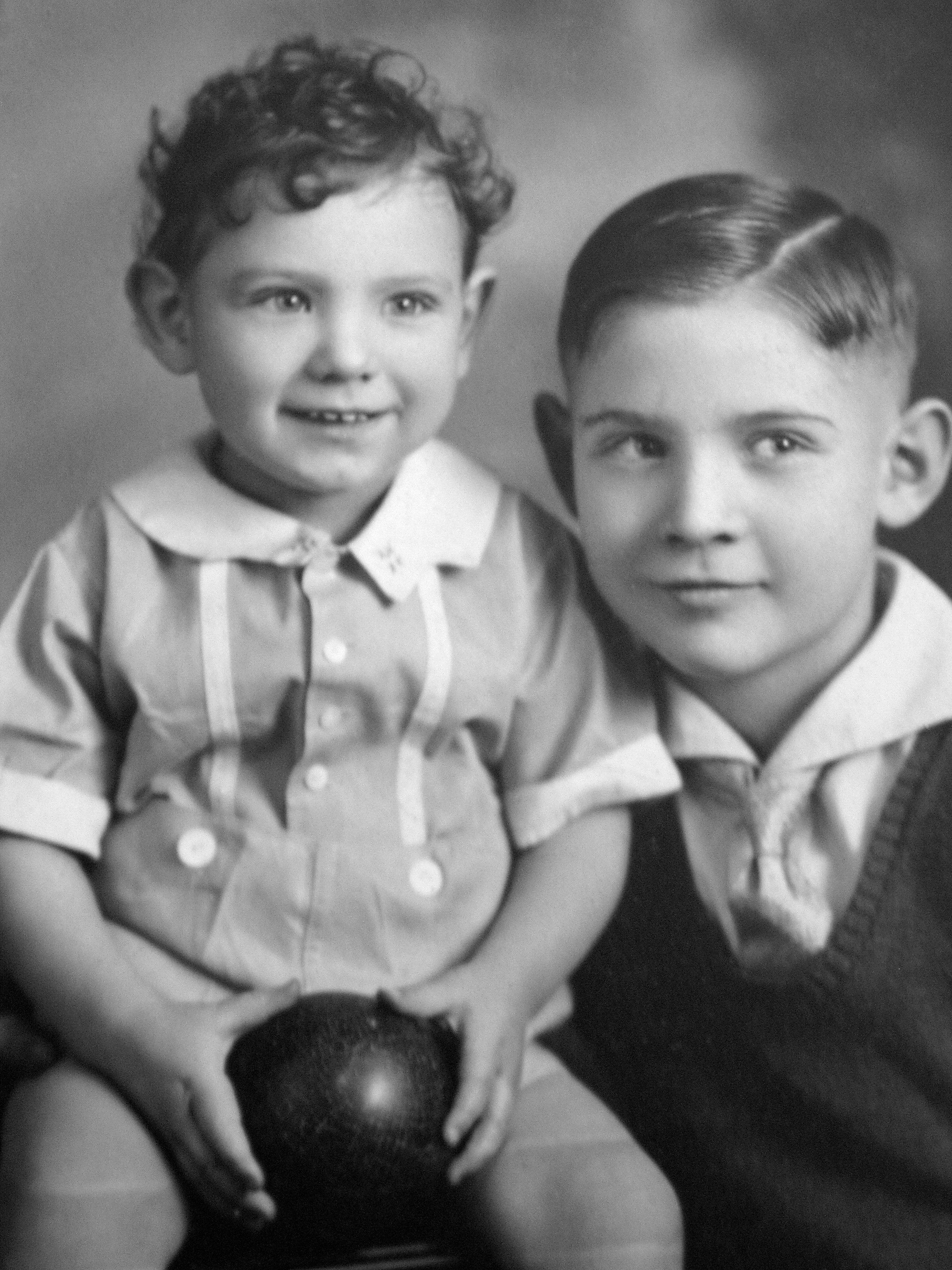 This is one of the earliest photos showing brothers David D. Hanneman (left) and Donn G. Hanneman, taken circa 1936. I believe this portrait was taken in Mauston, Wisconsin, where the family moved in early 1936. My Dad (David) was 3 years old that year. The family had a good relationship with Bauer Studios, so throughout the years there were always nice portraits of the Hanneman children.