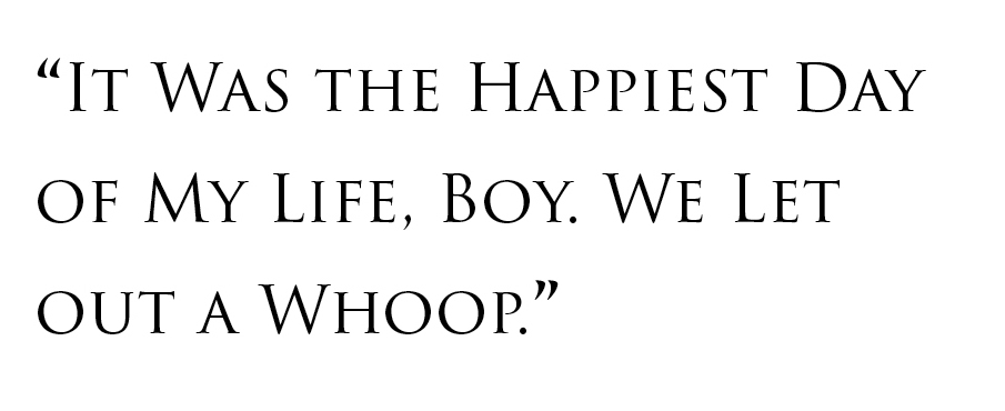 Near Saudi airspace, the commercial jet was joined up by two American F-15 fighters, which flew in tight formation as an escort. The pilots raised their helmet shields and gave a thumbs up. They broke away and were replaced by two British Tornado fighters. Their first official welcome home was a stirring sight for all on board. “It was the happiest day of my life, boy. We let out a whoop.”