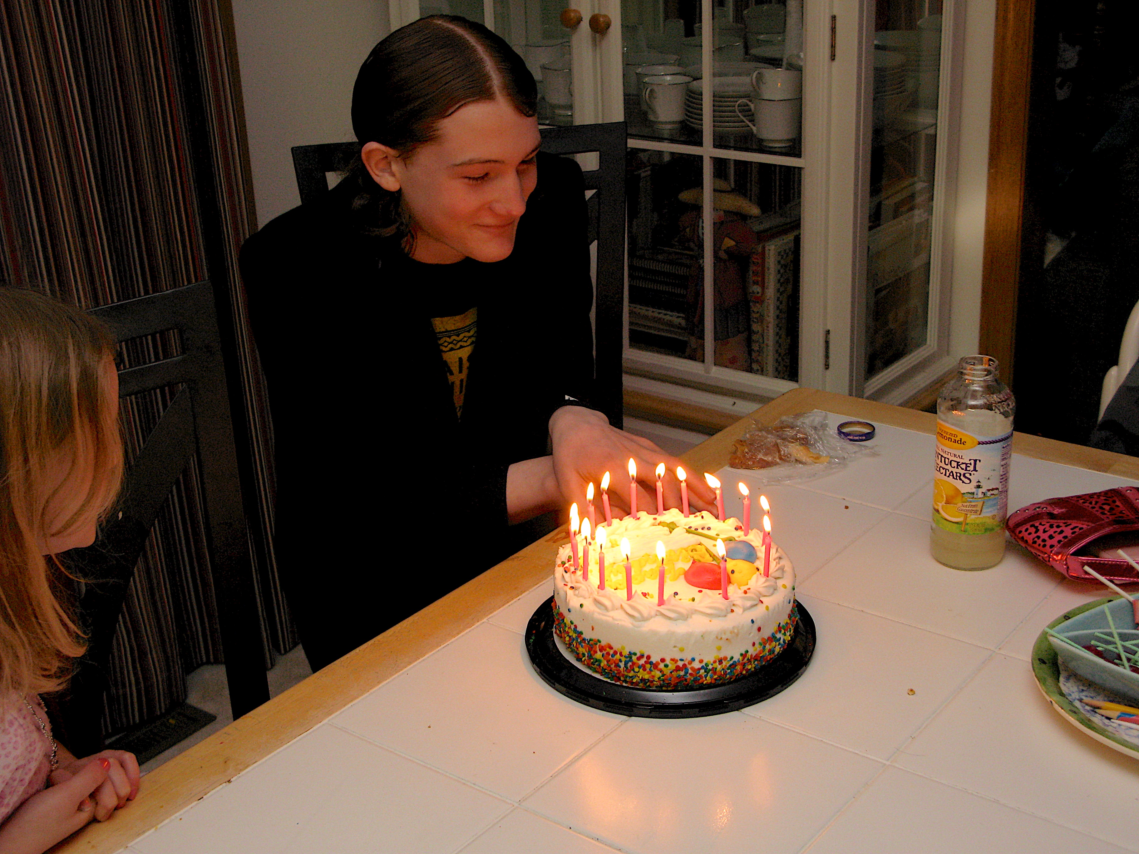 An art project stuck to the sliding glass door.The Christmas tree was always a labor of love.Stevie waits to blow out the candles on his 16th birthday.